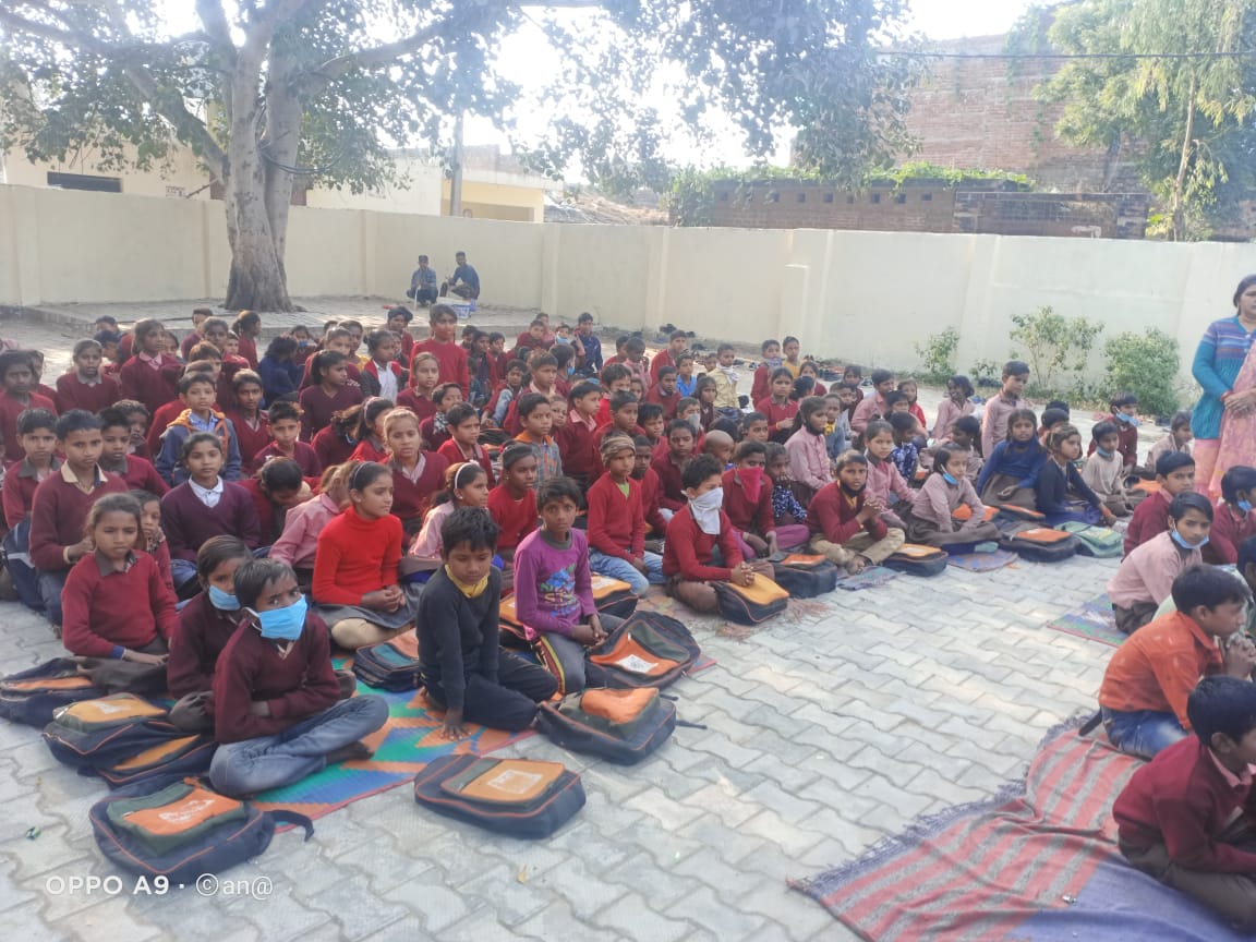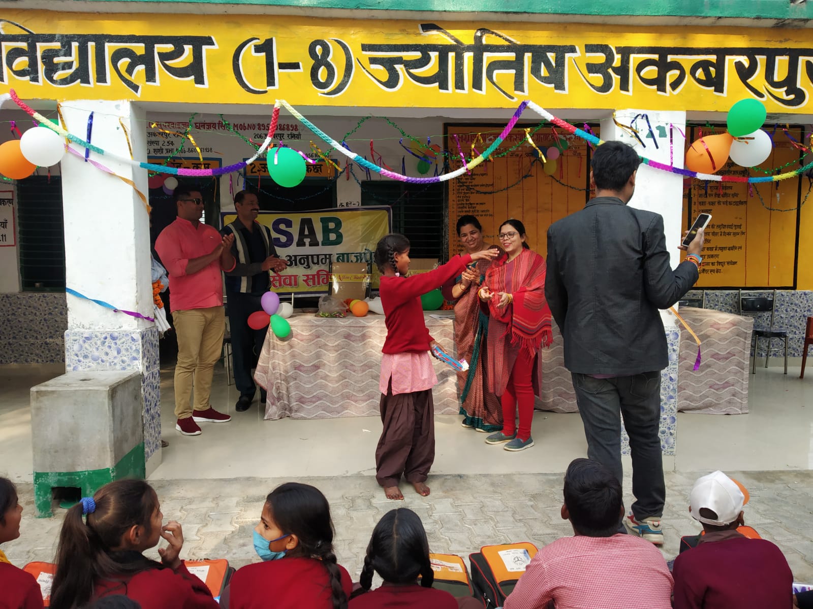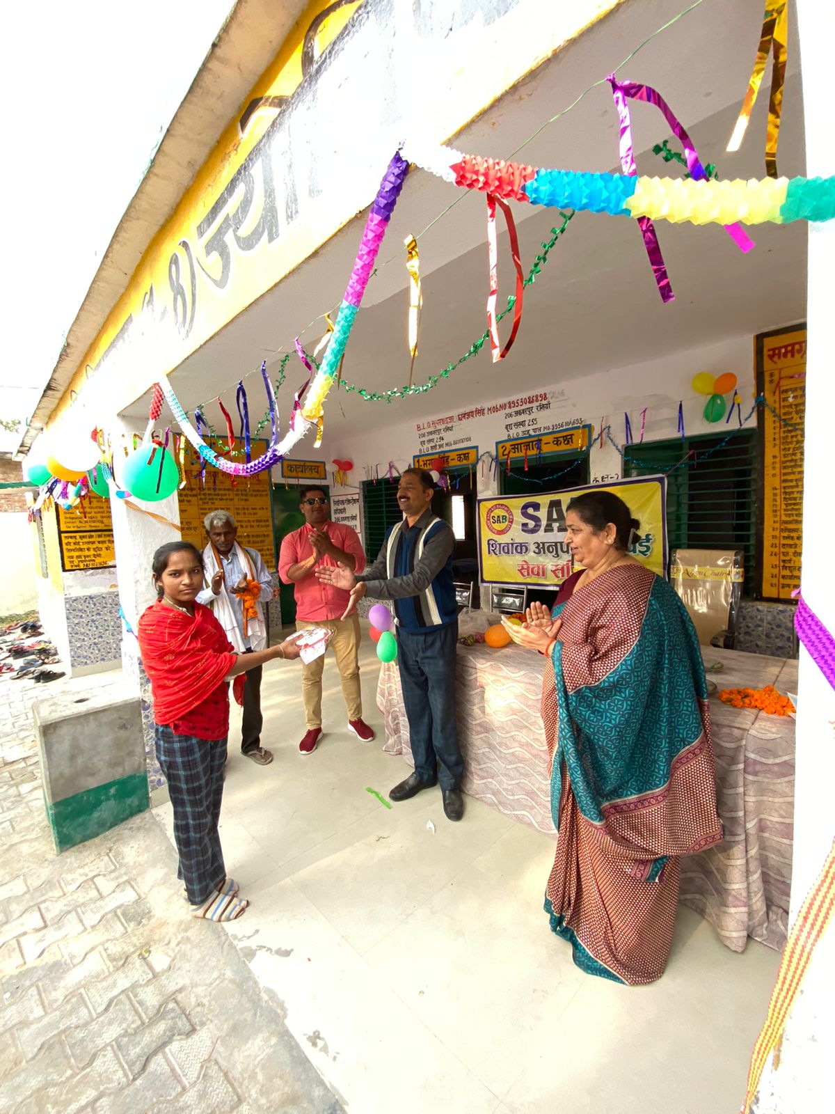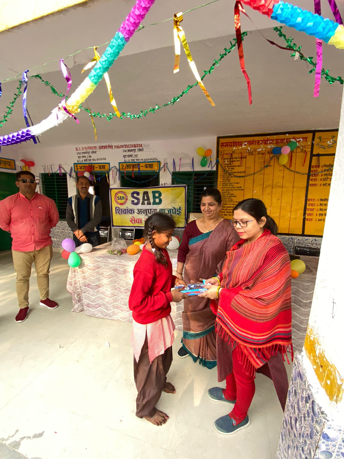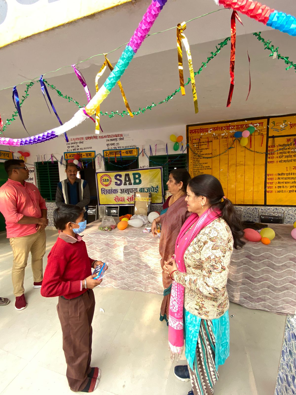 On 14th November 2021, at Gram Jyotish, Akbarpur, Kanpur Dehat, in the loving memory of his son Shivang Bajpai, arrangements were made for distributing stationery items and providing refreshments to children on the occasion of Children’s Day. This was the first service initiative by Sab Seva Charitable Trust.