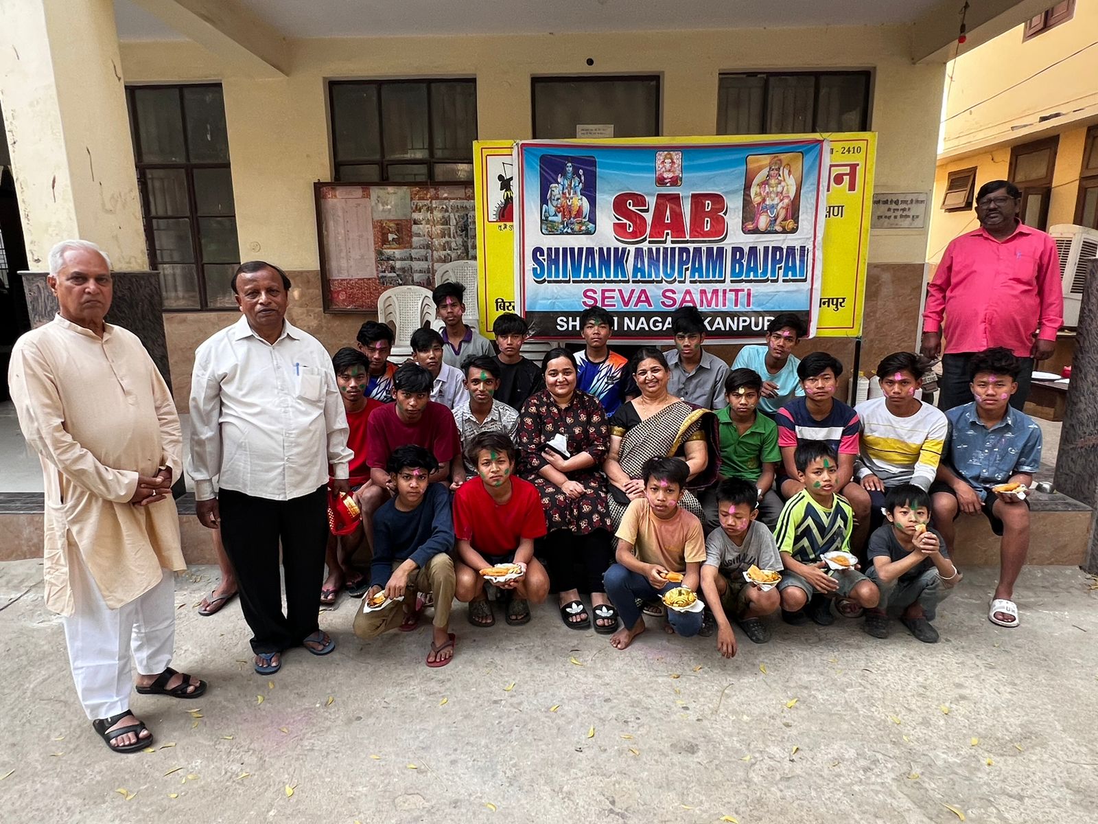 On the occasion of Holi, Mrs. Neelima Bajpai and Sakshi Bajpai, directors of Sab Seva Samiti, celebrated with children residing at Birsa Munda Hostel. They applied colors to the children, distributed gujiya and sweets, and contributed a financial donation to support their education, which was handed over to Hostel Secretary Ramakant Gupta. Hostel officials Mr. Pathak and Mr. Dinesh were also present. The presence of Mr. Vinod Shankar Dixit added to the encouragement of all.