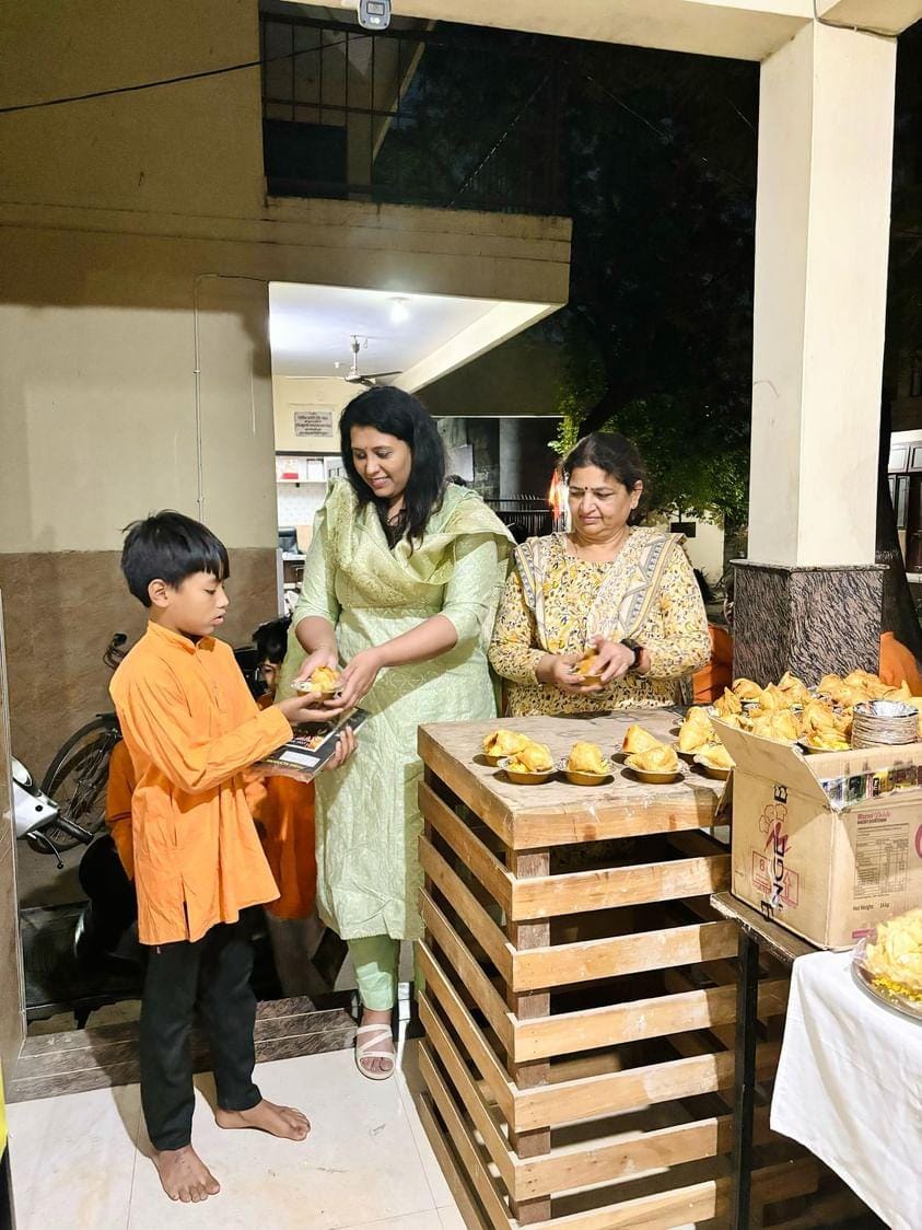 This year, like the last, Trust Director Neelima Bajpai bought new clothes of the children’s choice for nearly 17 parentless children from Gram Jyotish and nearby villages, directly from the shop, and gifted them along with Diwali wishes. The children’s faces lit up with joy after receiving the clothes.