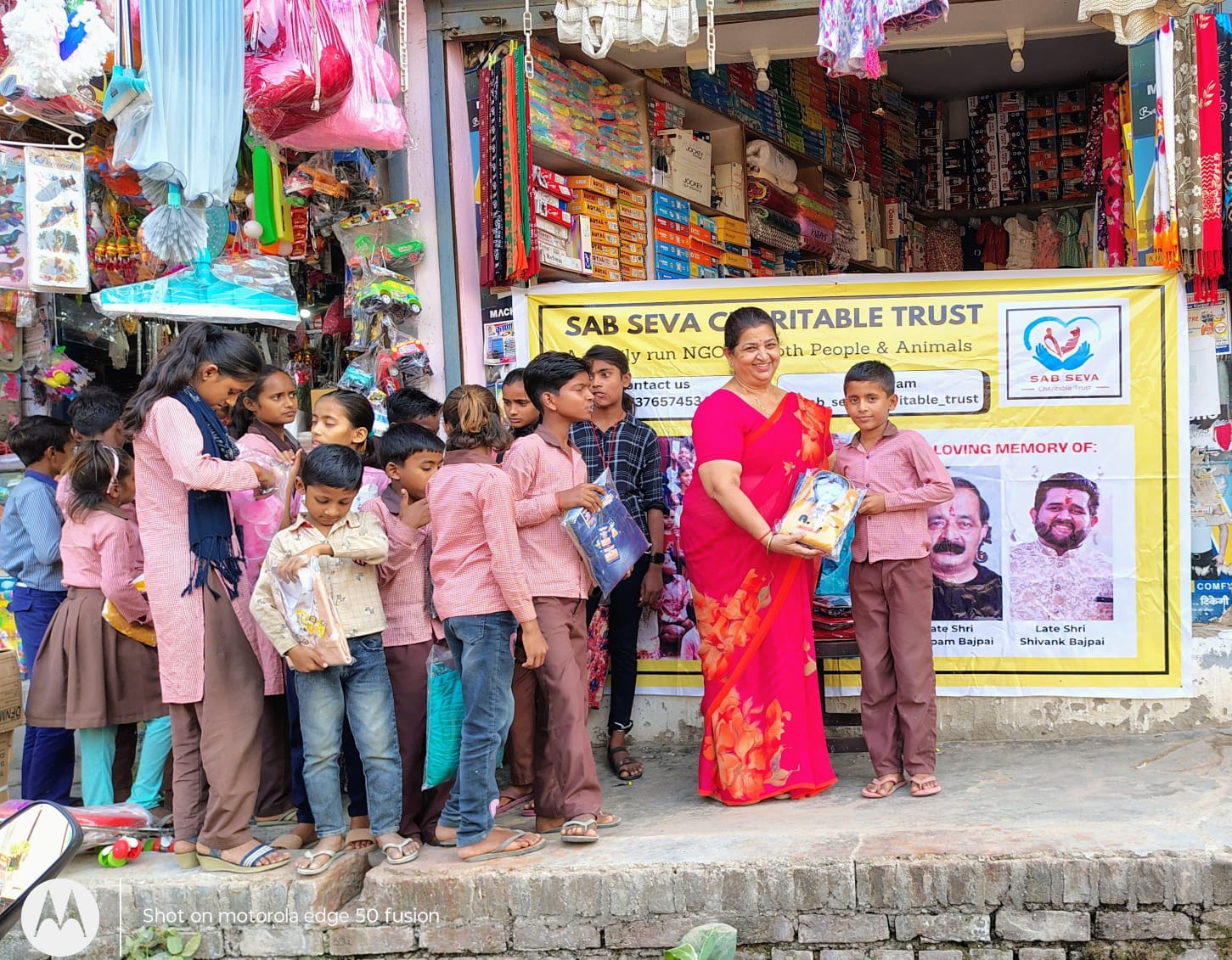 Sab Seva Samiti, founded on 14th November 2021 by Neelima Bajpai in memory of her son Shivank and husband Anupam Bajpai, aims to work for the welfare and progress of society, especially by supporting the education and essential needs of underprivileged children. Over time, the committee has been distributing study materials, clothes, and also encouraging children by organizing art, cultural, and sports competitions.
